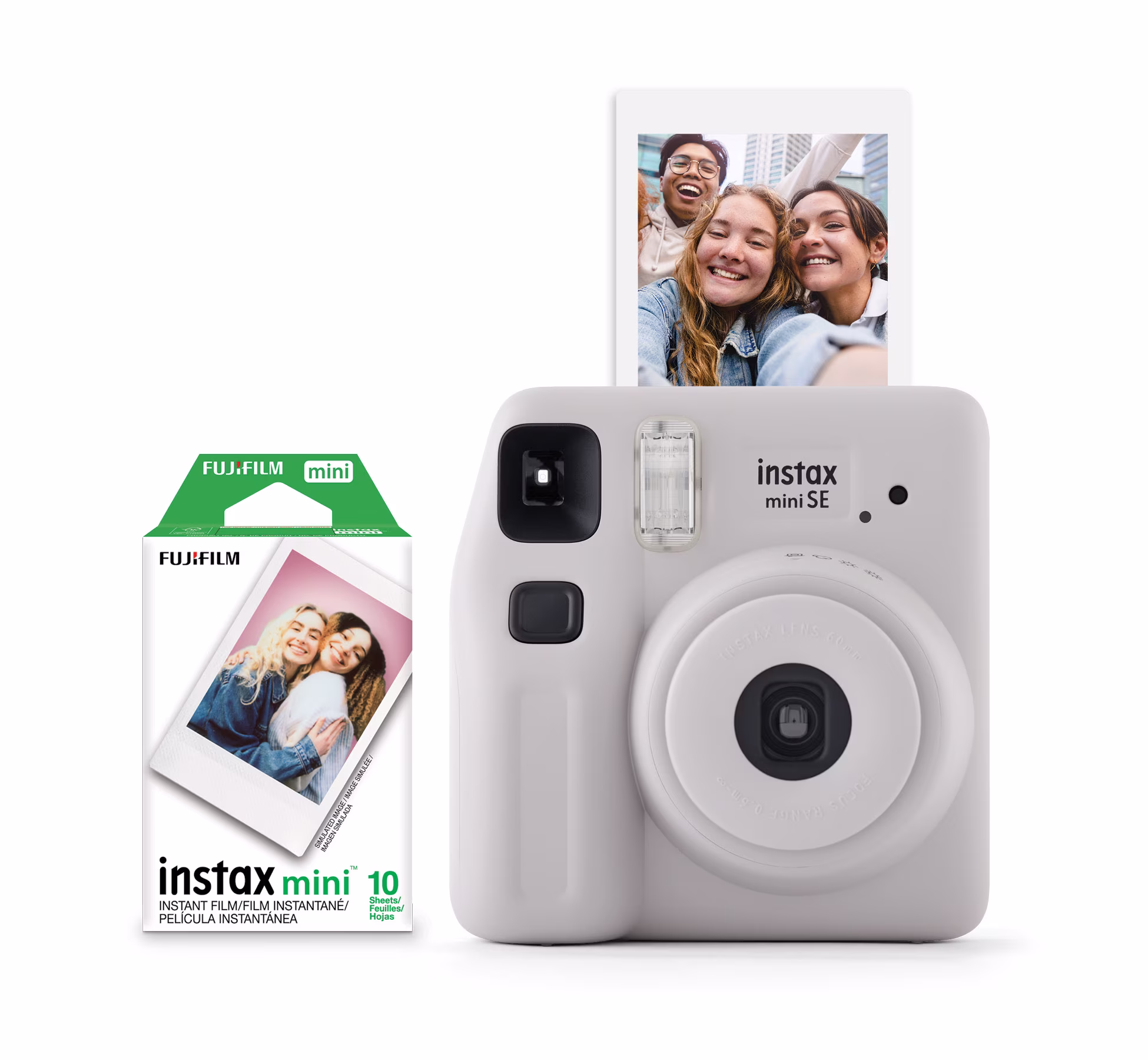 • The new Fujifilm Instax Mini SE Instant Camera is stylish, colorful, and compact. With its exposure control adjustment and easy point-and-shoot features, the Fujifilm Instax Mini SE will no doubt quickly become a favorite. Superior images are just an instant click away with the camera’s high-quality FUJINON lens in combination with the Fujifilm Instax Mini Film. Just point, shoot, and let the fun start immediately. The new Instax Fujifilm Mini SE instant camera is available in five trending colors: Lavender, Light Blue, Light Pink, Seafoam Green, and Light Gray. This Blister Pack comes with a 10 Pack of Fujifilm Instax Mini Film. The Fujifilm Instax Mini SE Instant Camera gives you high picture quality that is simple to operate.