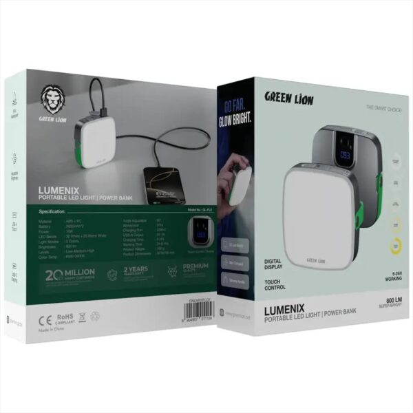 If you’re an outdoor enthusiast, the Green Lion Solar Lumix Portable LED Flashlight with Power Bank is the perfect companion, offering an excellent combination of brightness, portability, and convenience. With a super-bright 1000 lumens, this compact yet powerful flashlight features 50 LEDs (30 white and 20 warm) producing four different lighting modes to suit your needs. Whether you want to create a soft ambiance or need full illumination, the adjustable brightness levels (low-medium-high) and color temperature (6500-3500K) allow you to customize the lighting experience to your preferences. The 150° adjustable angle makes it easy to direct the light exactly where it’s needed. Powered by solar energy (1W solar panel) and a 4000mAh battery, it provides up to 24 hours of reliable power. Plus, its IPX4 rating allows you to use it in any weather conditions. It features USB-C charging and a USB-A output for your devices, making it a versatile lamp for any adventure.