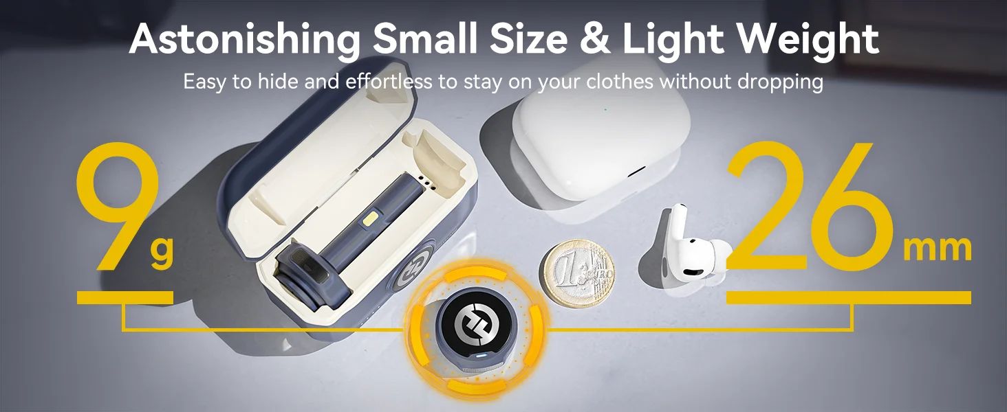 [INCREDIBLY SMALL] Weighing just 9g, LARK M2 wireless lavalier microphone is the lightest mini microphone on the market. With its lossless sound reproduction and top-of-the-line recording capabilities, it brings you unmatched recording performance. The wireless audio transmission can reach up to 1,000ft line-of-sight range. Perfect for filmmakers, vloggers, and podcasters.