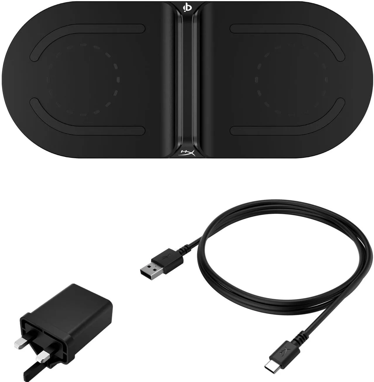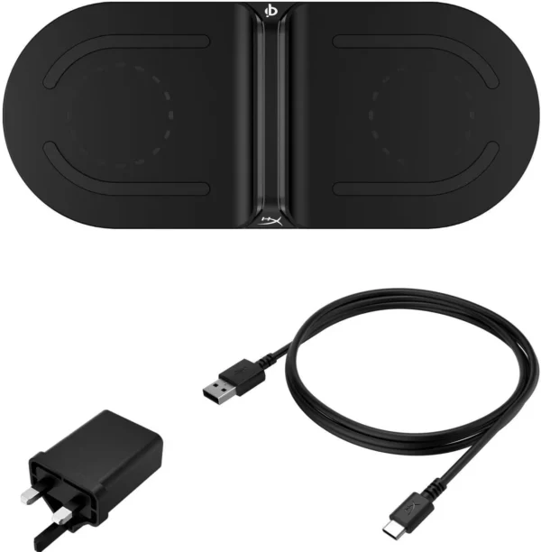 HyperX ChargePlay Base – Qi Wireless Charger | 4P5M8AA Qi Certified wireless charger Individual LED indicators AC wall adapter Compatible with 2 Qi-enabled devices
