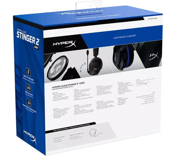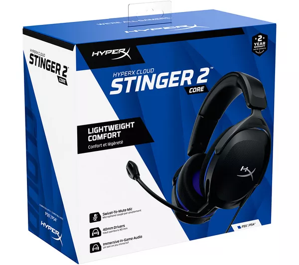The HyperX Cloud Stinger™ 2 Core is the essential entry-level PlayStation headset at an affordable price. Cloud Stinger Core 2 delivers great, immersive sound, comfort, and convenience; all the basic things PlayStation players want from a gaming headset. With audio controls right on the headset itself and a swivel-to-mute mic, you will not need to interrupt your game and fiddle with menus just to change the volume or mute yourself. Adjustable sliders and soft ear cushions provide comfort for long gaming sessions, and the flexible mic lets you position the microphone just where you want it. Stay focused on your game thanks to the closed cup design and directional 40mm drivers with enhanced bass.