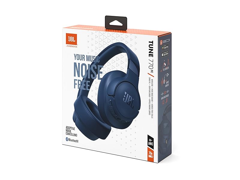 Adaptive Noise Cancelling with Smart AmbientAdaptive Noise Cancelling means zero distractions when it’s time to focus on your studies or get your groove on. And if you want to hear the world around you without removing your headphones, Ambient Aware and TalkThru sharpen the sounds of your surroundings or voices. Easily activate these Ambient Sound Control modes through the JBL Headphones app.Bluetooth 5.3 with LE AudioJBL Tune 770NC Wirelessly stream high-quality JBL Pure Bass Sound from your smartphone with the help of the latest Bluetooth technology. Optimize Bluetooth performance with the Smart Audio and Video feature in the JBL Headphones app by selecting Audio (for the best sound quality) or Video (for optimal gaming and video output) modes.JBL Pure Bass SoundJBL Tune 770NC headphones feature renowned JBL Pure Bass sound, the same that powers the most famous music venues all around the world. The Tune 770NC sports JBL Tune 770NC large 40mm dynamic drivers, reproducing all the nuances of your audio content.Customize Your Listening ExperienceDownload the free JBL Headphones app to tailor the sound to your taste by choosing one of the preset EQ modes or adjusting the EQ curve according to your content, your style, and your taste. Voice prompts in your language guide you through the Tune 770NC’s other features.Hands-Free Calls with VoiceAwareJBL Tune 770NC Easily control your sound and manage your calls from your headphones with convenient buttons on the earcup. Hear your voice while you’re talking, with the help of VoiceAware.JBL Tune 770NC Up to 70 Hours of Battery Life with Speed ChargeFor long-lasting fun, listen wirelessly for up to 44 hours with Bluetooth and ANC on, or 70 hours with ANC off. Recharge the battery in as little as 2 hours with the convenient USB-C cable. A quick 5-minute recharge gives you 3 additional hours of music. Use the included 3.5mm audio cable to save even more battery life by avoiding Bluetooth, or use it to plug into airplane audio jacks and similar devices.Multipoint ConnectionJBL Tune 770NC Effortlessly switch from one Bluetooth device to another. Jump from a video on your tablet to a call on your mobile phone, and never miss a moment.Lightweight, Comfortable, and Foldable DesignThe lightweight materials and soft ear cushions with a padded headband make the headphones comfortable to wear for extended periods. The foldable design makes them convenient to carry anywhere or anytime you want music.