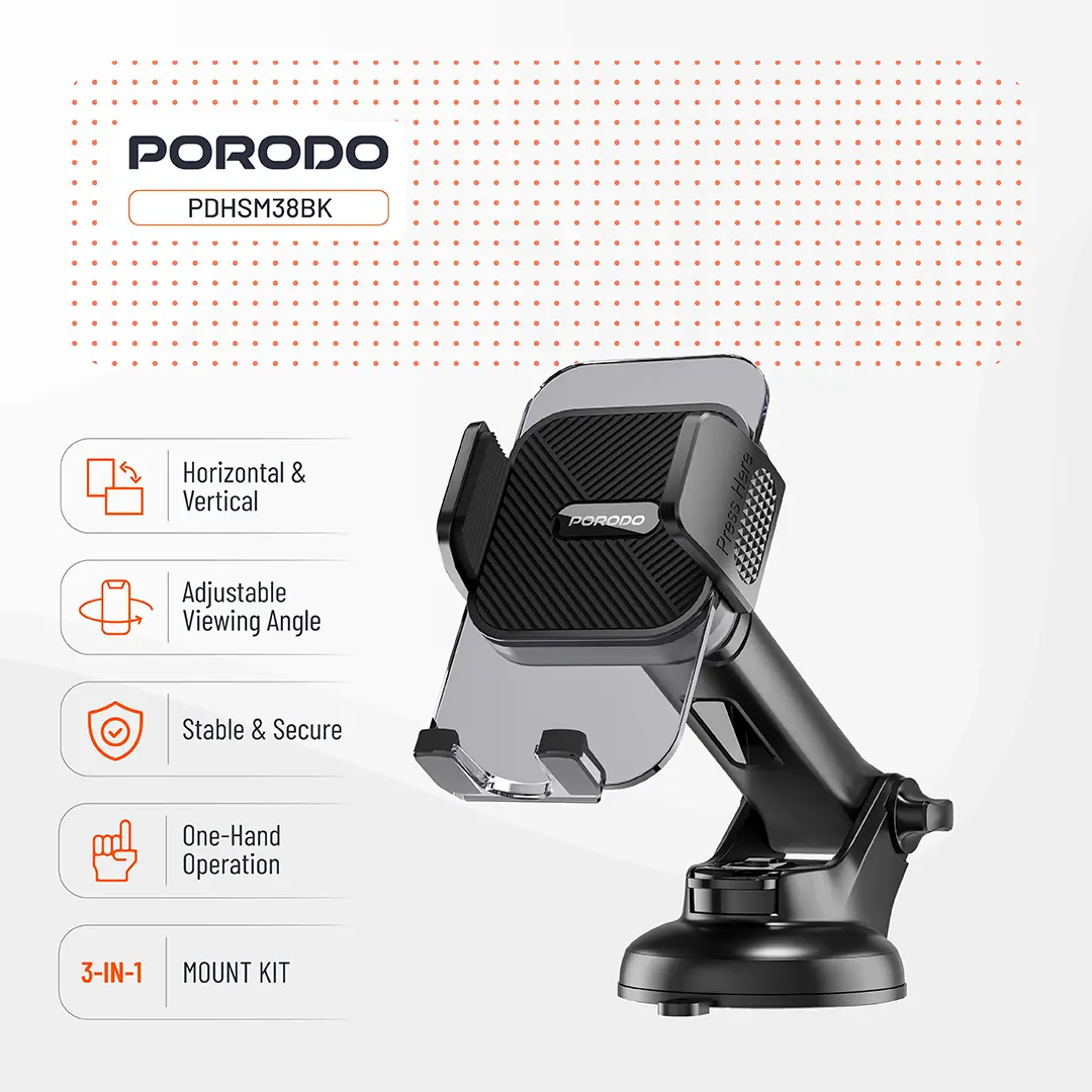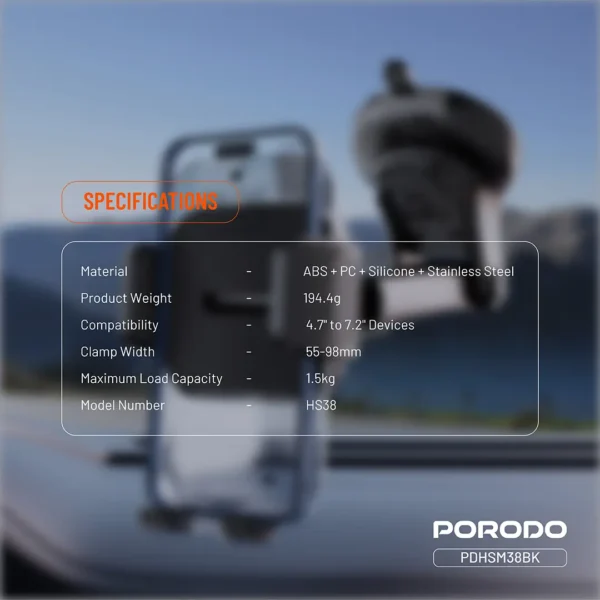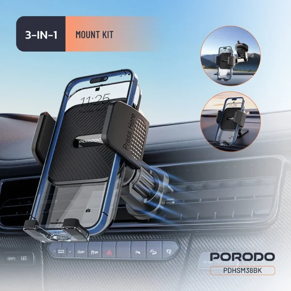 The Porodo 3-in-1 Mount Kit aims to offer users versatility and stability while holding the phone. This holder provides a great deal of reliability and a long lifetime, as it is made out of ABS, PC, Silicone, and Stainless Steel. The mount fits 4.7- to 7.2-inch big-screened devices and clamp sizes between 55-98mm, making it perfect for most phones. Whether horizontal or vertical placement, the adjustable angle of view is an all-in-one practical system for you. A sturdy air vent clip keeps your mount steady while driving and lets you rest assured-all air-vent mounts are not created equal. One-handed operation allows the user to mount or remove the phone within seconds, keeping everyone else free to work. The mount is considerably lightweight at 194.4 g while being sufficiently strong for everyday use.