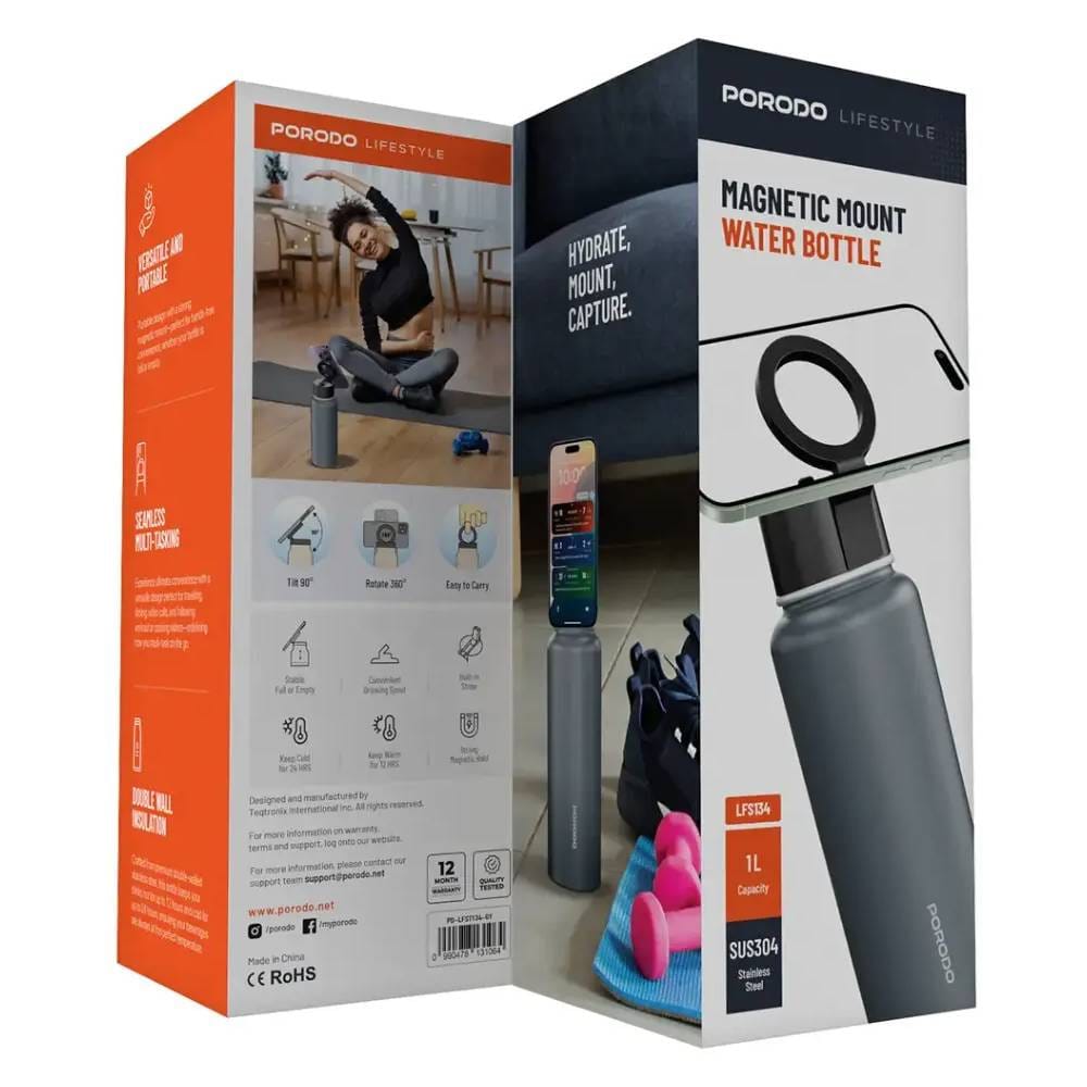 The Porodo Lifestyle Magnetic Mount Water Bottle perfectly balances functionality and style with its 700 mL capacity and BPA-free, double-wall insulation that keeps your drink at an ideal temperature, whether hot or cold, for up to 24 hours cold and up to 12 hours hot. It features 360° rotation and 90° tilt for effortless multitasking, and it is fit for active lifestyles. The strong magnetic grip, with MagSafe compatibility, keeps it in place when on the go. It has a wide round mouth for ease of filling and cleaning, and its stable design will avoid any possibility of it tipping over, whether full or empty. Light in weight and easy to carry, it is ideal for attending one on work, journeys, or even outdoor activities. Each sip with this multi-functional water bottle is convenient and a guarantee of efficiency.