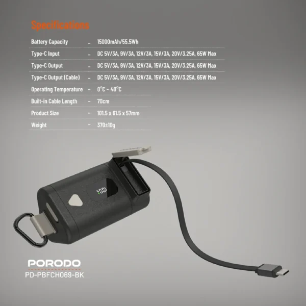 Be the first to review “Porodo – PB069 15000mAh Power Bank 70CM Retracable Type-C” Cancel reply