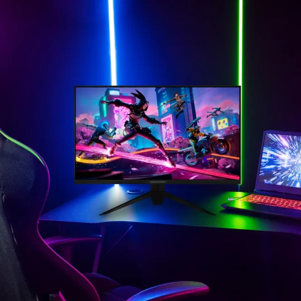 The Porodo Gaming 27″ FHD Gaming Monitor is engineered to provide an immersive gaming experience with outstanding looks and smooth performance. This monitor boasts an enormous 27″ CSOT panel with an E-LED backlight; it comes with a Full HD resolution of 1920×1080P, giving real crispness and vibrancy to the image quality. Moreover, the powerful refresh rate of 120Hz and Overdrive function reduce blurs in motion; it definitely assures competitive skills for gamers. Enjoy colors in vivid life and realism with the contrast ratio of this monitor at 1500:1, with 16.7 million display colors, while the 178° wide viewing angle lets it be seen easily from almost all angles. Accentuating your gaming setting, the frameless design showcases a slim, modernistic view with an array of trendy RGB lighting. It provides multi-directional input facilities: VGA, HDMI, and Audio In, thus connecting several devices flawlessly. Setup is easy with the UK 3-pin plug, making the Porodo Gaming Monitor a great choice for any gamer.