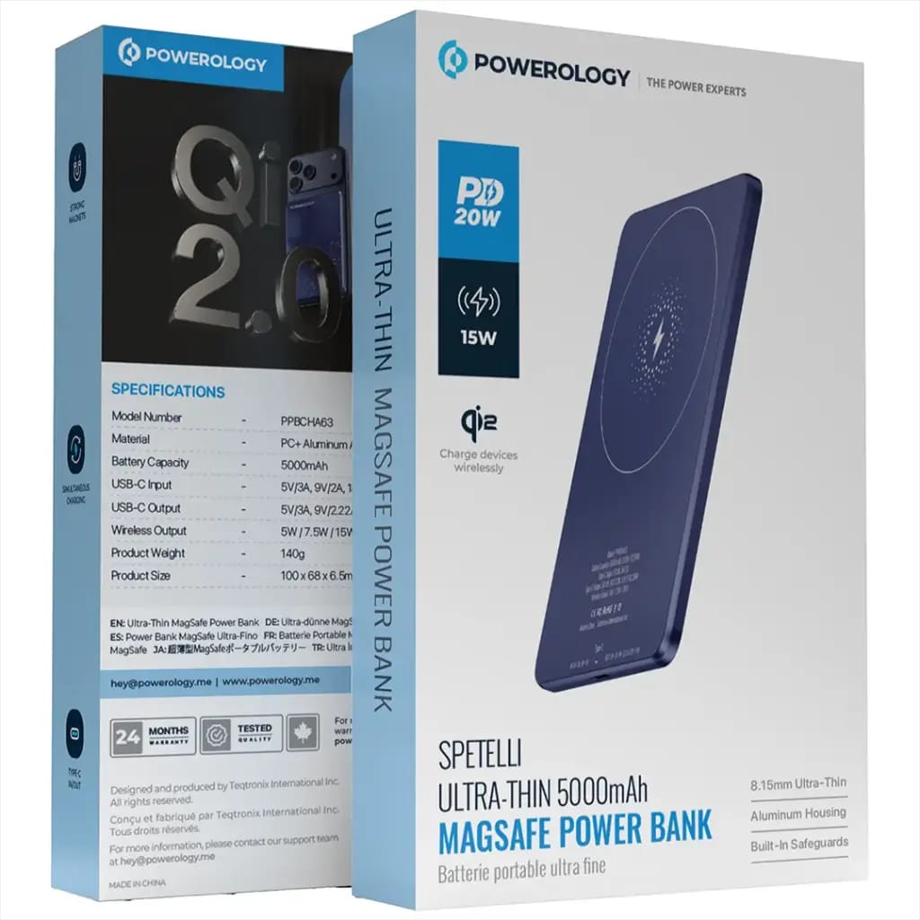 The compact and practical power bank is designed to suit the modern lifestyle. The Powerology ultra-thin 5000mAh MagSafe Power Bank comes in one of the slimmest sizes, as thin as 0.65 cm, and fits snugly on your MagSafe-compatible devices without discomfort. The 5000mAh battery included in it can power your phone and other devices all at once. Ergonomics: The integrated magnets will only snap together, not allowing the power bank to fall off easily from its holder. The Type-C input has a maximum input/output of 20W PD, which instantly charges your gadgets. Also, it has a wireless charging function with 5W, 7.5W, or 15W outputs for use with different gadgets. Incorporated thermal design and protection features are essential for the safety of components. While on the move, at work, or in public transport, minimize these interruptions as the Powerology Ultra-Thin MagSafe Power Bank has all the options regarding specifications and ease of use to keep your gadgets topped up effectively and safely.