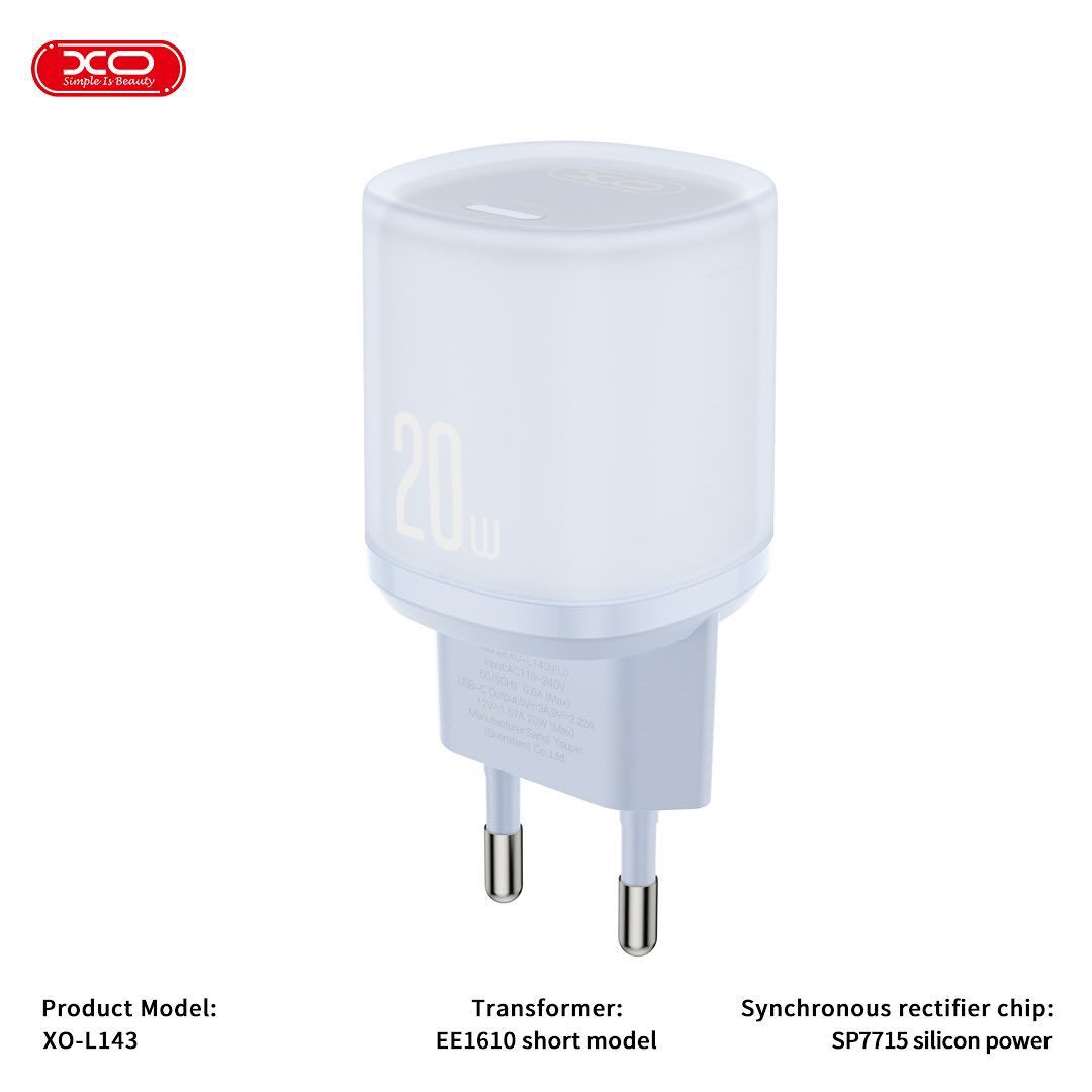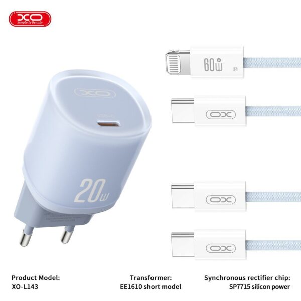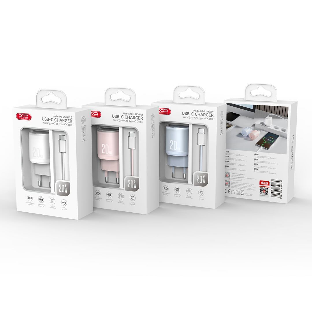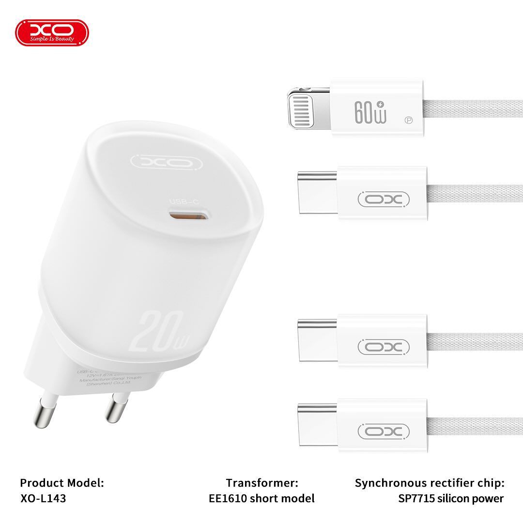 XO – L143 USB-C Charger With Cable Type-C To (Lighting/Type-C)20W