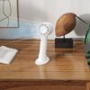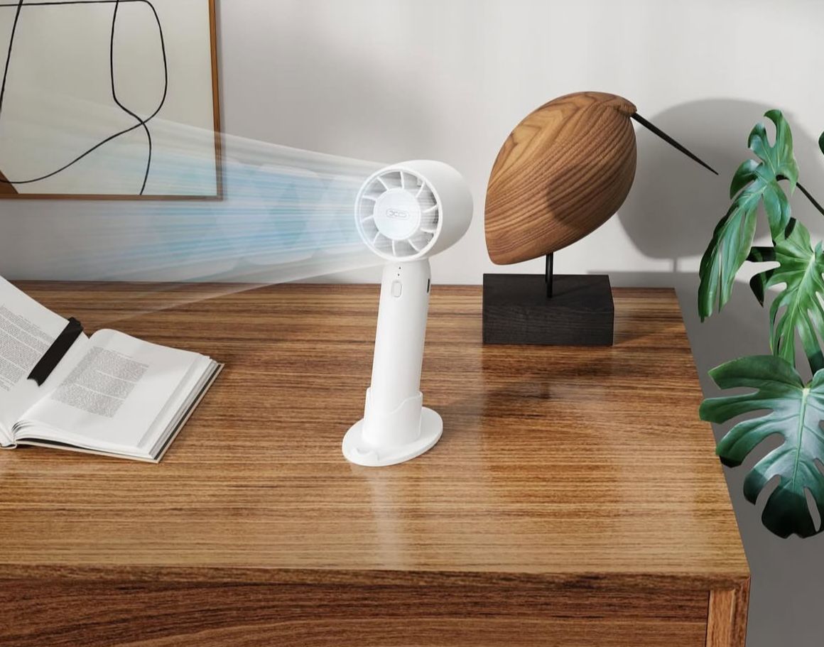 XO-MF93 mini desktop/handheld fan with up to 2.5 hours of usage time per charge, and three different speed options. Small, lightweight, and stylish. Easily fits onto a crowded desk, or into your bag.